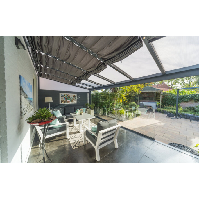 Door een slim ontworpen systeem, is het mogelijk om de overkapping later nog uit te breiden tot bijvoorbeeld een luxe tuinkamer. Zo kunt u de zijkant (gedeeltelijk) dichtmaken met speciaal ontworpen rabatdelen of u plaatst glazen schuifwanden zodat u ook op de frissere dagen en avonden heerlijk van uw tuin kunt genieten. En dat alles kunt in stap voor stap doen. Begin met een prachitge BuitenlevenXXL overkapping, en eindig met een complete tuinkamer!